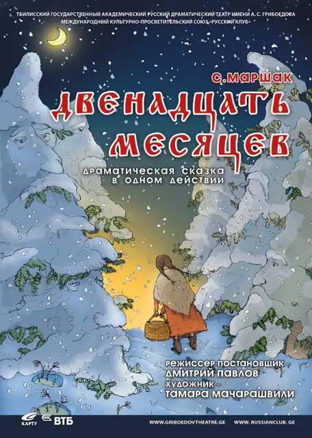 «ДВЕНАДЦАТЬ МЕСЯЦЕВ» – драматическая сказка С. Маршака для детей и взрослых. Режиссер-постановщик – Дмитрий Павлов (Санкт-Петербург). Продюсер – Николай Свентицкий. Премьера состоялась 28 декабря 2012 года. Проект осуществлен при поддержке Международного культурно-просветительского союза «Русский клуб».